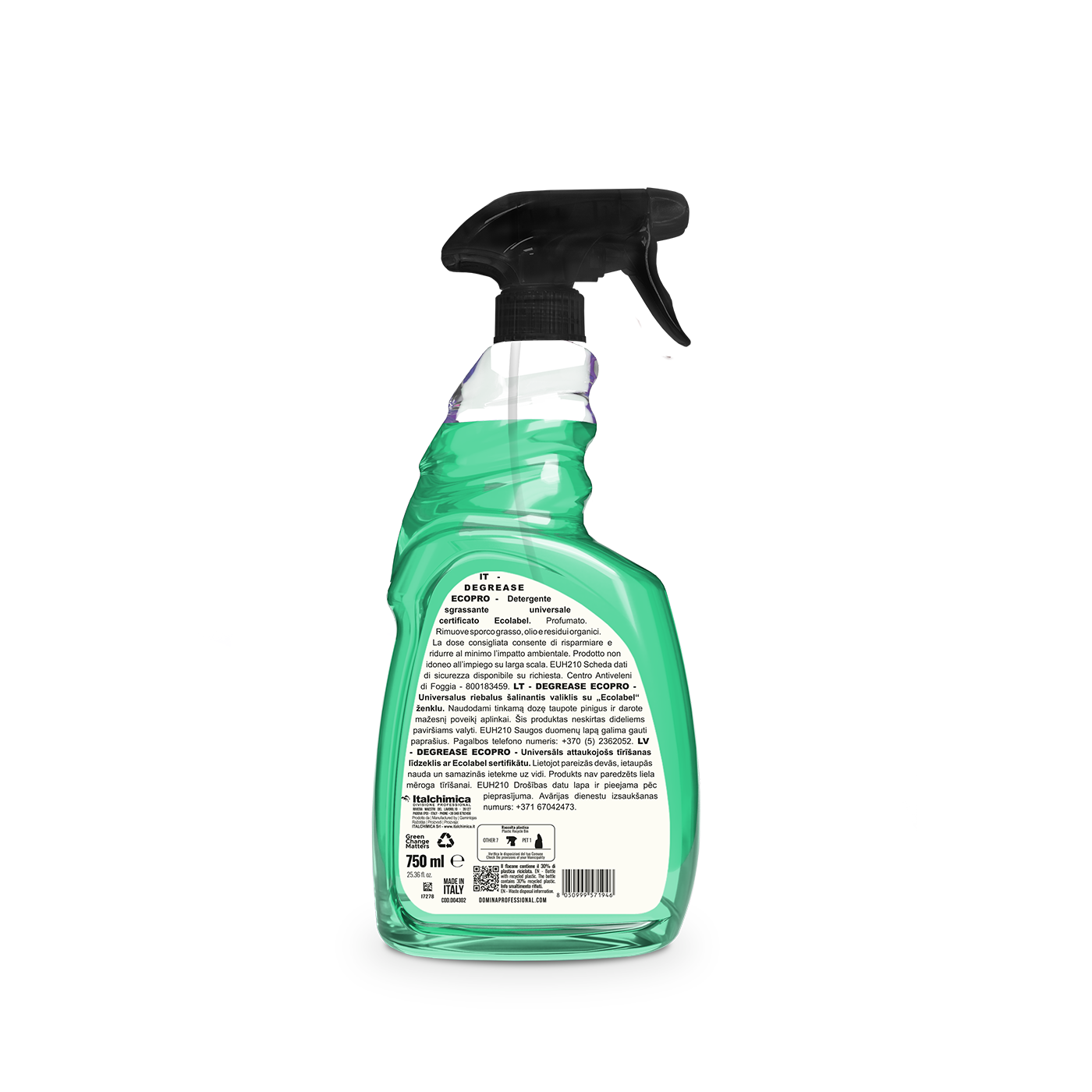 • Rimuove efficacemente lo sporco grasso, l'olio e i residui organici